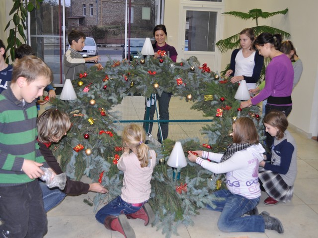 Fotky príprava verejného adventného venca a zapálenie prvej adventenej sviečky